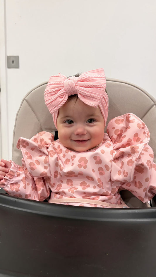 Pink Leopard Pattern Frill Detailed Waterproof Bib with Sleeves