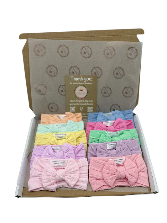 Step Into Spring Bundle Of 10 Smaller Bow Cable Knit Headbands - Suitable From Newborn
