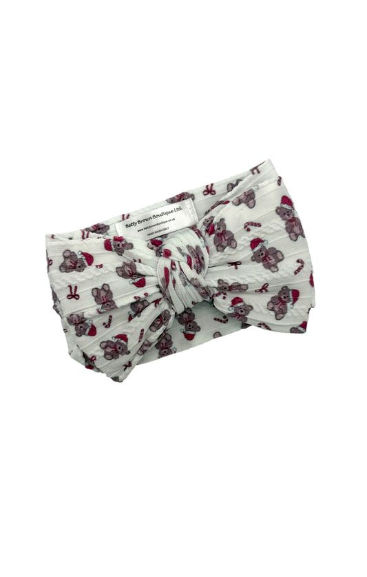 Christmas Teddy Bear Smaller Bow Cable Knit Headband - 2025