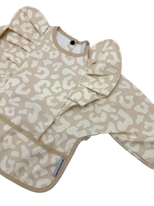 Neutral Leopard Frill Detailed Waterproof Bib with Sleeves