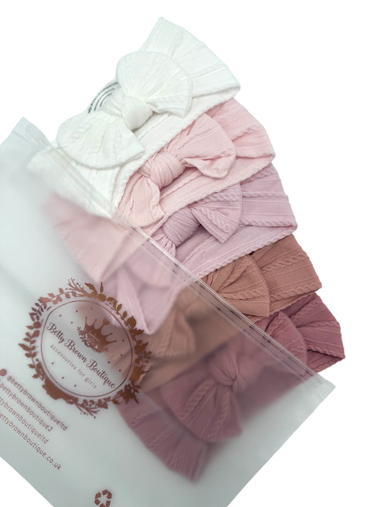 Pink Starter Bundle Smaller Bow Cable Knit Headbands - Suitable from newborn