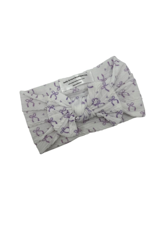 Lilac Bow Pattern Smaller Bow Cable Knit Headband