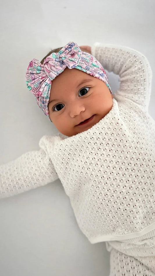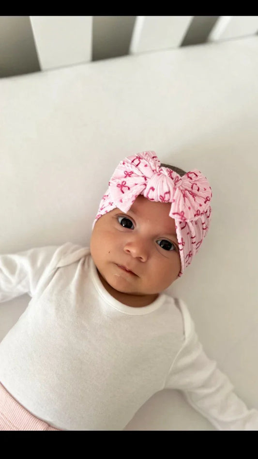 Pink Bow Pattern Smaller Bow Cable Knit Headband