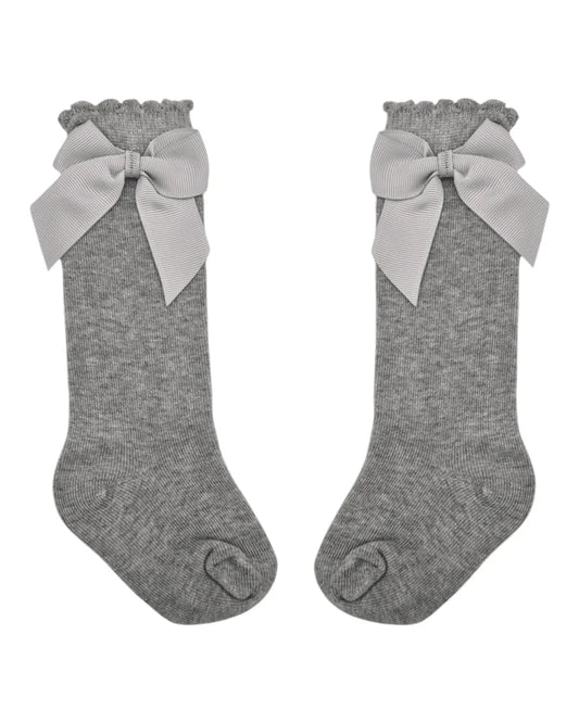 Grey Knee High Style Socks With 3 Inch Bow