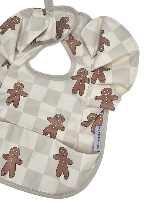 Gingham Gingerbread Man Pattern Christmas Frill Detailed Waterproof Bib