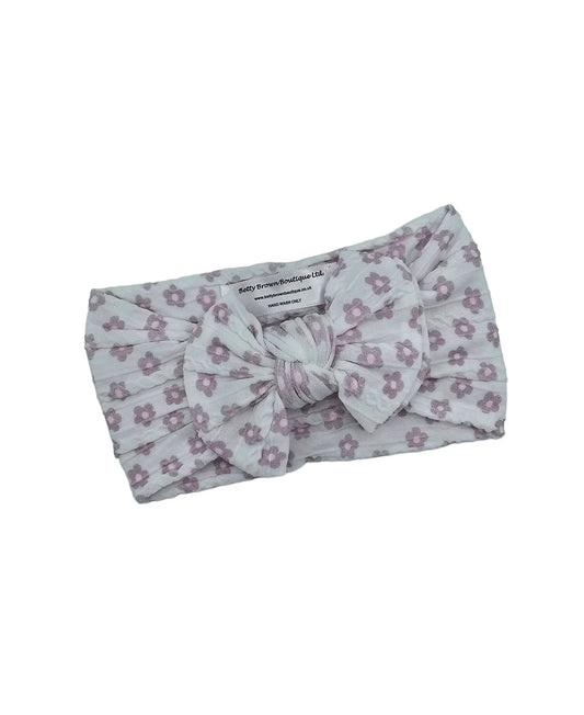 Lilac Daisy Pattern Larger Bow Cable Knit Headband