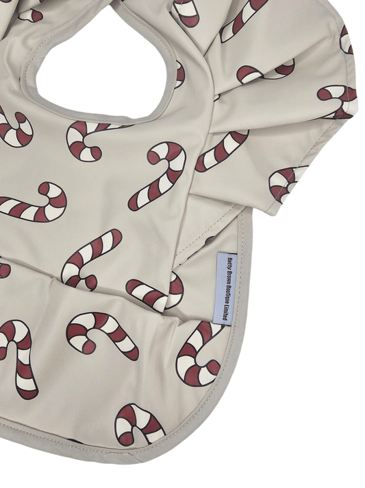 Neutral Candy Cane Christmas Pattern Frill Detailed Waterproof Bib