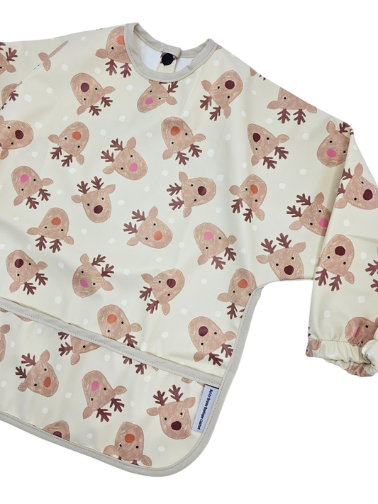 Reindeer Christmas Pattern Waterproof Bib with Sleeves