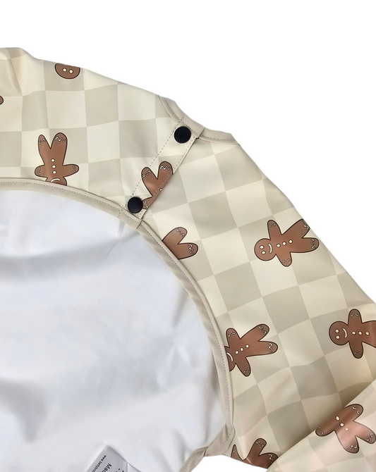 Gingham Gingerbread Man Christmas Pattern Waterproof Bib with Sleeves