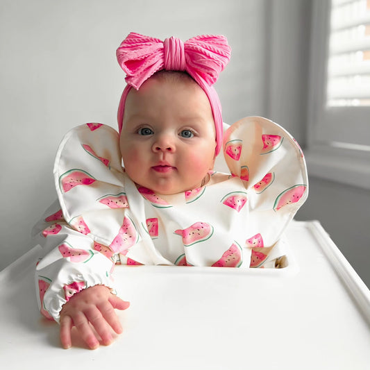 Pink Watermelon Frill Detailed Waterproof Bib with Sleeves
