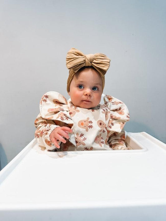 Reindeer Christmas Pattern Frill Detailed Waterproof Bib with Sleeves