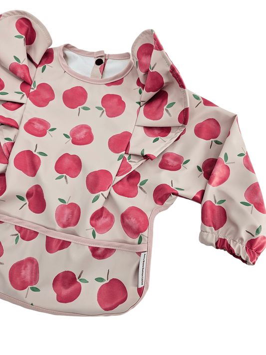 Apple Print Frill Detailed Waterproof Bib with Sleeves