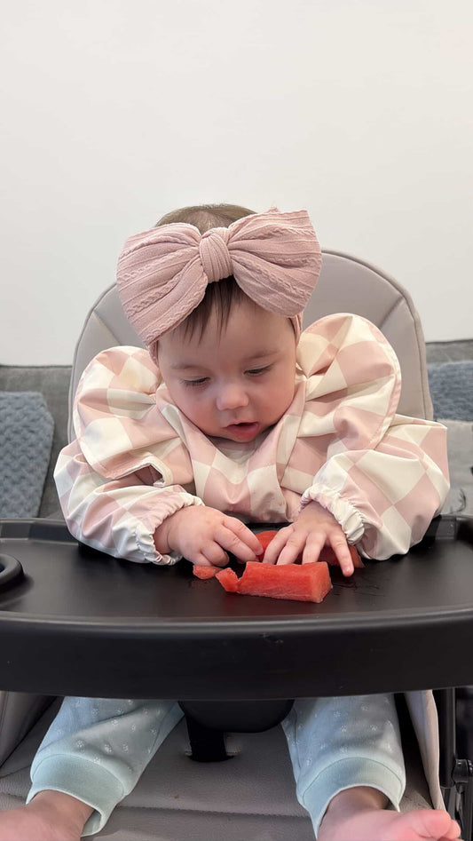 Light Pink Bow Pattern Frill Detailed Waterproof Bib with Sleeves