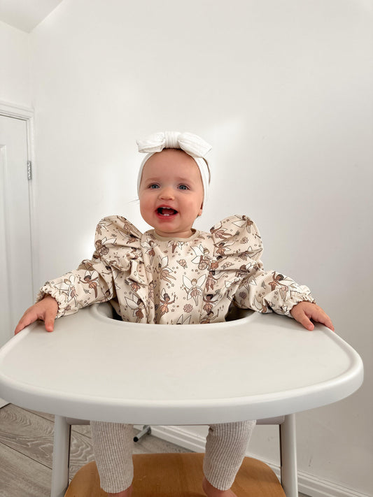 Neutral Fairy Pattern Frill Detailed Waterproof Bib with Sleeves