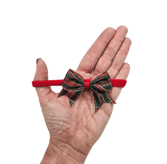 Red Tartan with Gold 2.5 Inch Dainty Bow On Headband - Christmas Collection