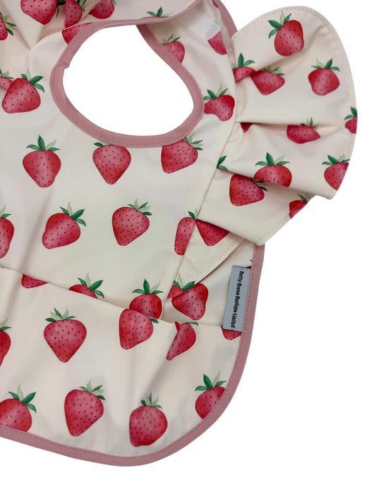 Pale Pink Strawberry Pattern Frill Detailed Waterproof Bib