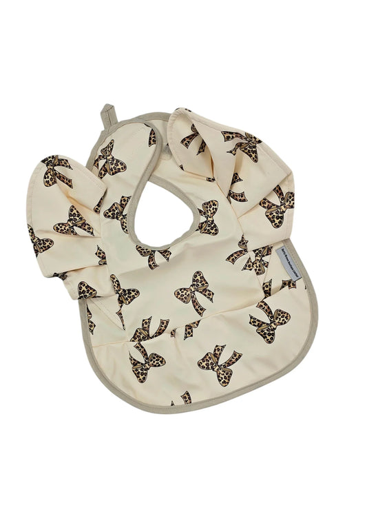 Leopard Bow Pattern Frill Detailed Waterproof Bib