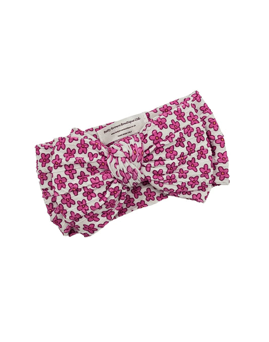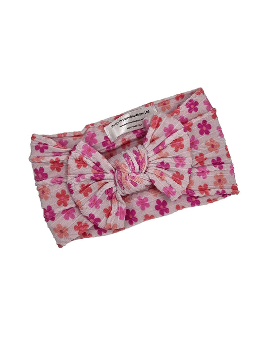 Pink and White Daisy Pattern Larger Bow Cable Knit Headband