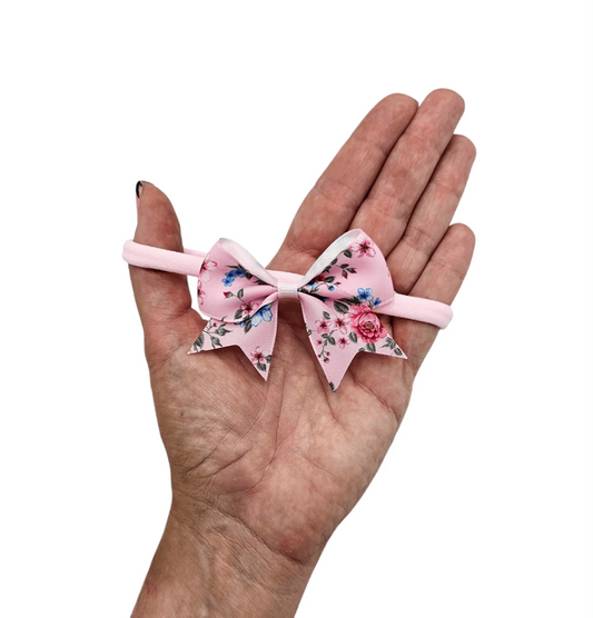 2.5 Inch Light Pink Floral Kiss Dainty Bow on Headband
