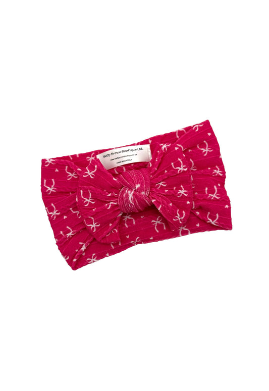 Cranberry Red Bow Pattern Smaller Bow Cable Knit Headband - Christmas Collection 2025