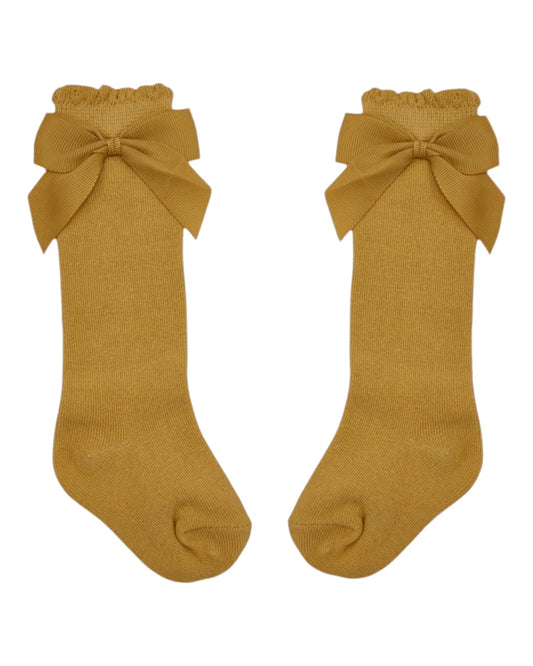 Dandelion Yellow Knee High Style Socks With 3 Inch Bow