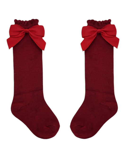 Red Knee High Style Socks With 3 Inch Bow