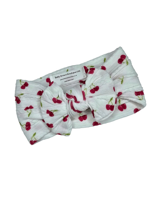White Cherry Pattern Smaller Bow Cable Knit Headband