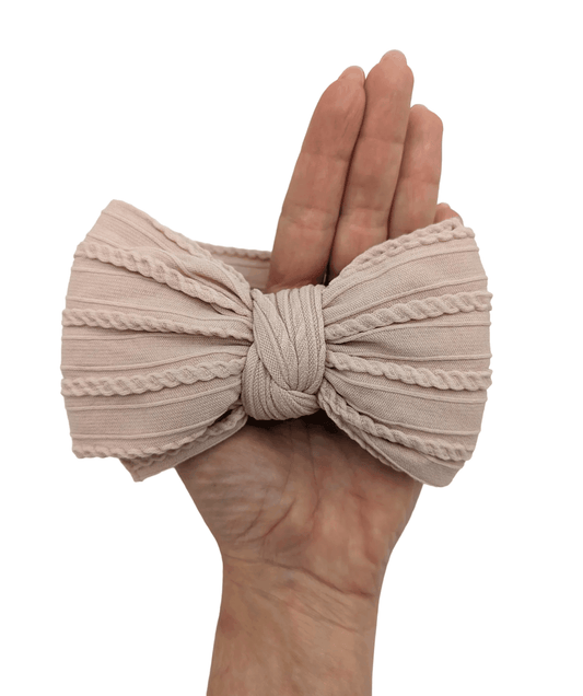 Neutral Newborn Bundle of Larger Bow Cable Knit Headbands - Suitable From Newborn