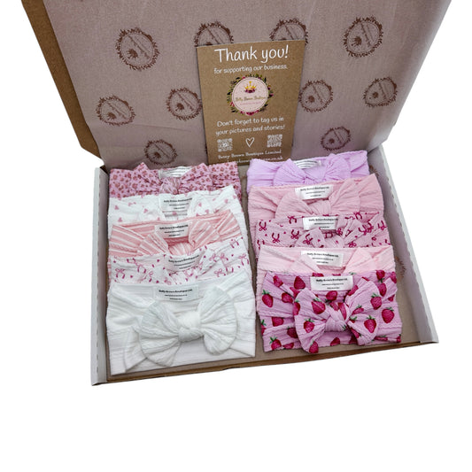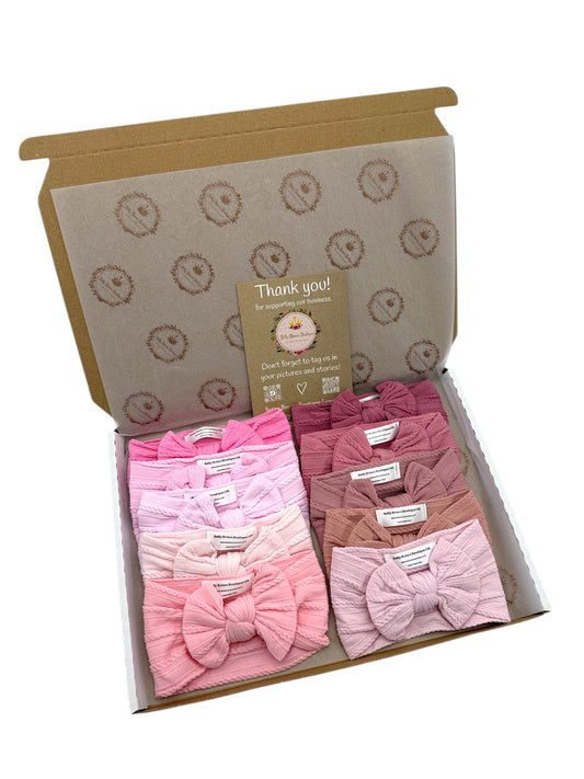Pinks Bundle of 10 Smaller Bow Cable Knit Headbands - Suitable From Newborn