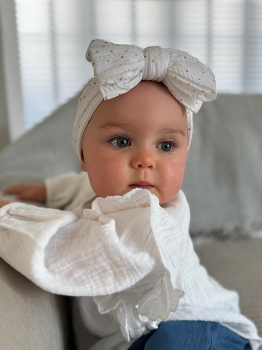 White Gold Spot Larger Bow Cable Knit Headband - Christmas Collection