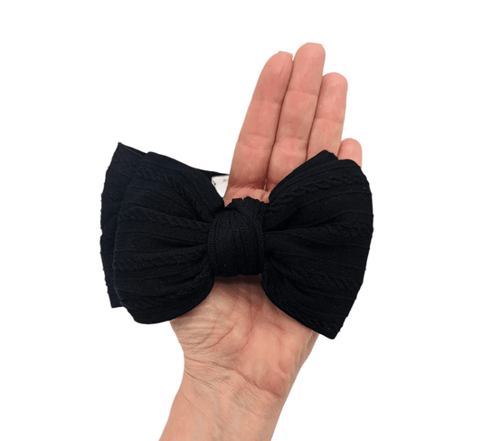 Black Larger Bow Cable Knit Headband