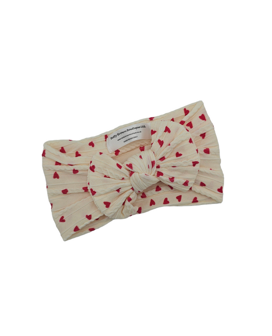 Cream and Red Heart Pattern Smaller Bow Cable Knit Headband - Valentines Collection