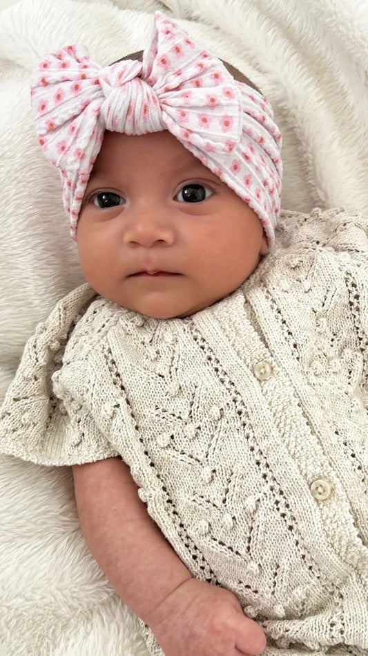 Ditsy Flower Pattern Smaller Bow Cable Knit Headband