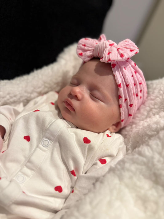 Pink and Red Heart Pattern Smaller Bow Cable Knit Headband - Valentines Collection