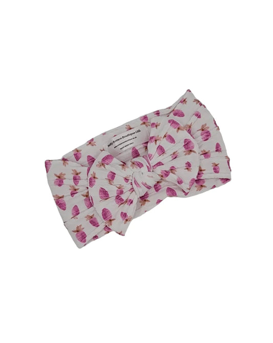 Pink Watercolour Strawberry Pattern Smaller Bow Cable Knit Headband