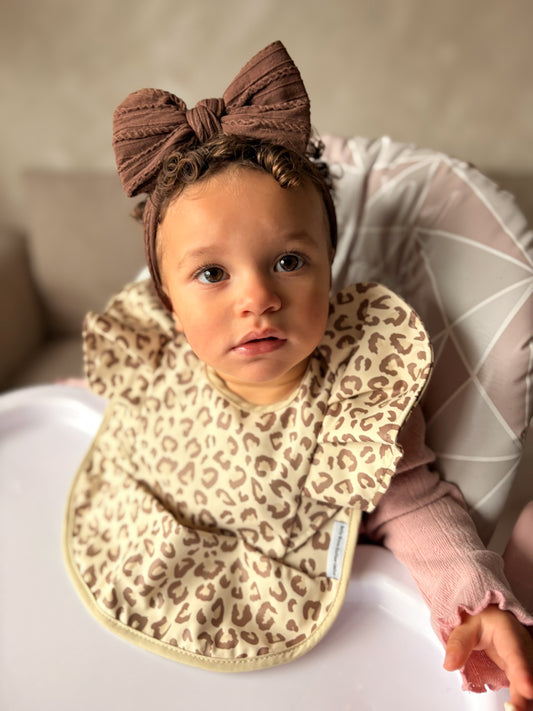 Pink Leopard Pattern Frill Detailed Waterproof Bib