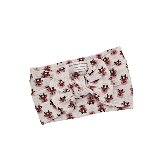 Christmas Reindeer Pattern Smaller Bow Cable Knit Headband