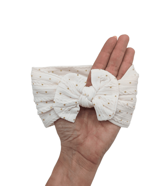 White Gold Spot Larger Bow Cable Knit Headband - Christmas Collection