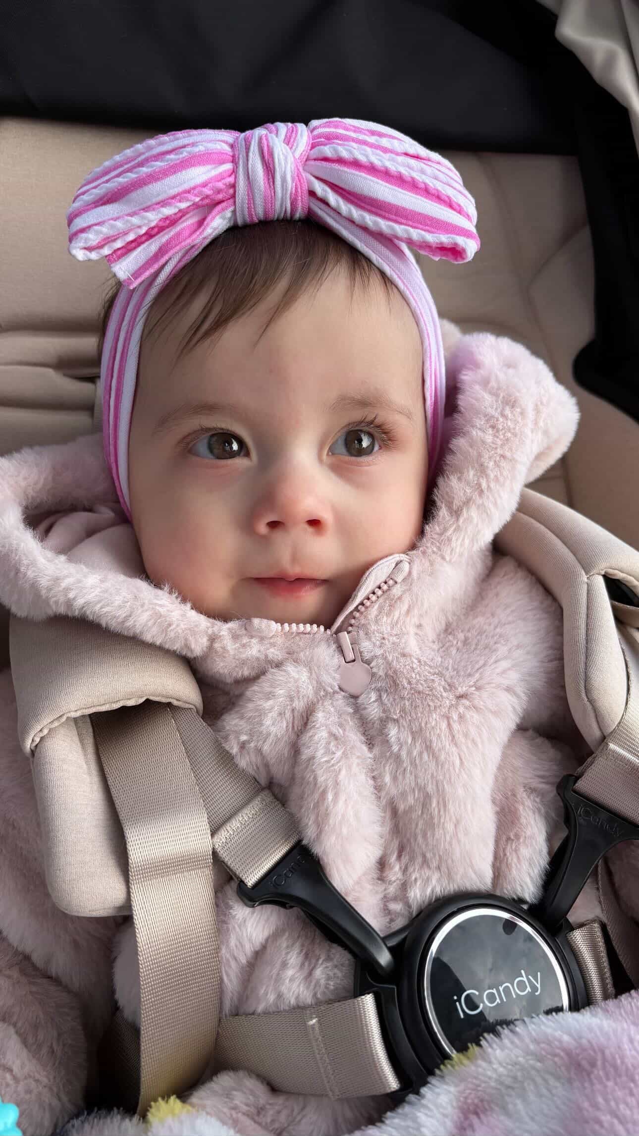 Candy Pink Stripe Larger Bow Cable Knit Headband