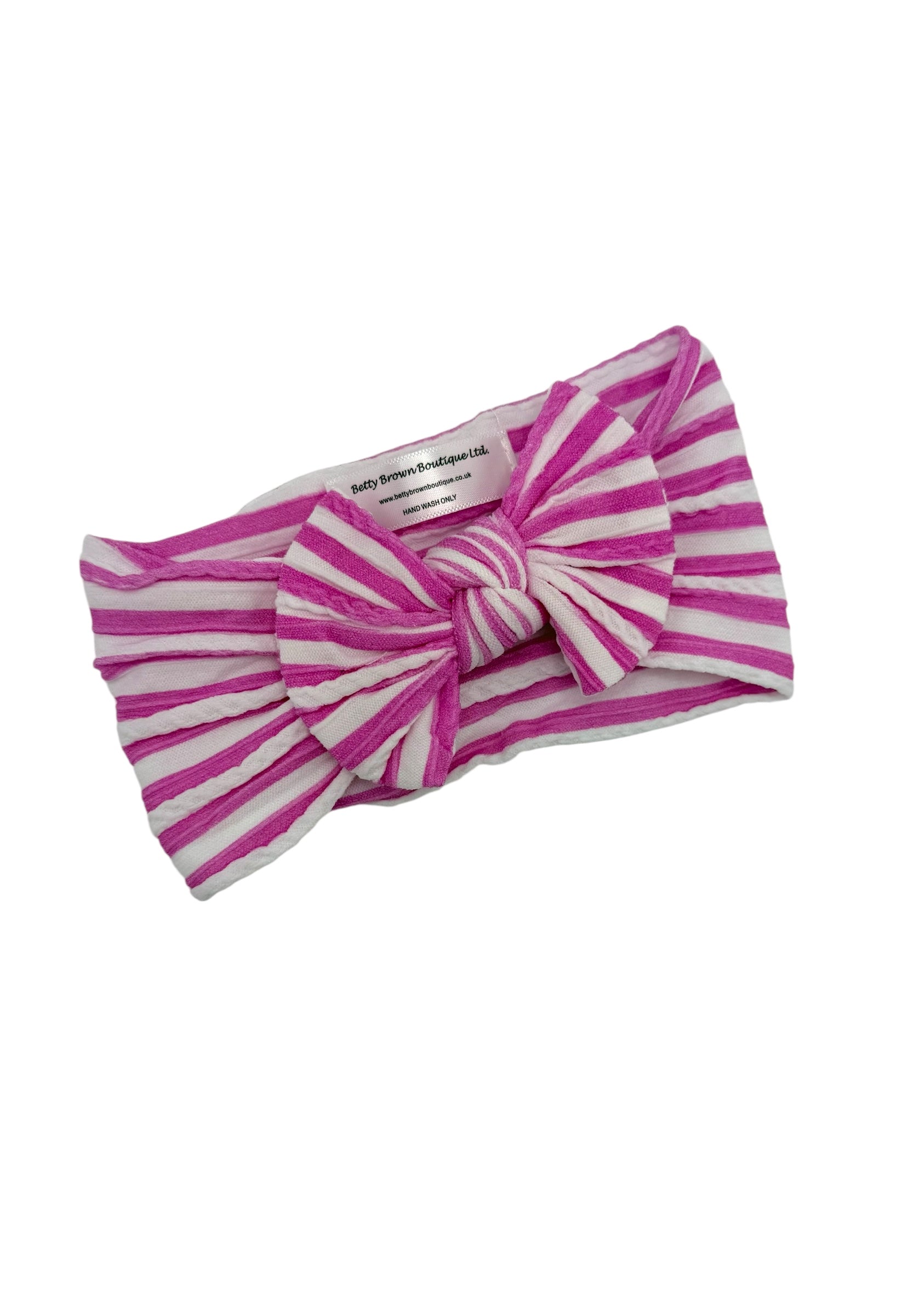 Candy Pink Stripe Smaller Bow Cable Knit Headband