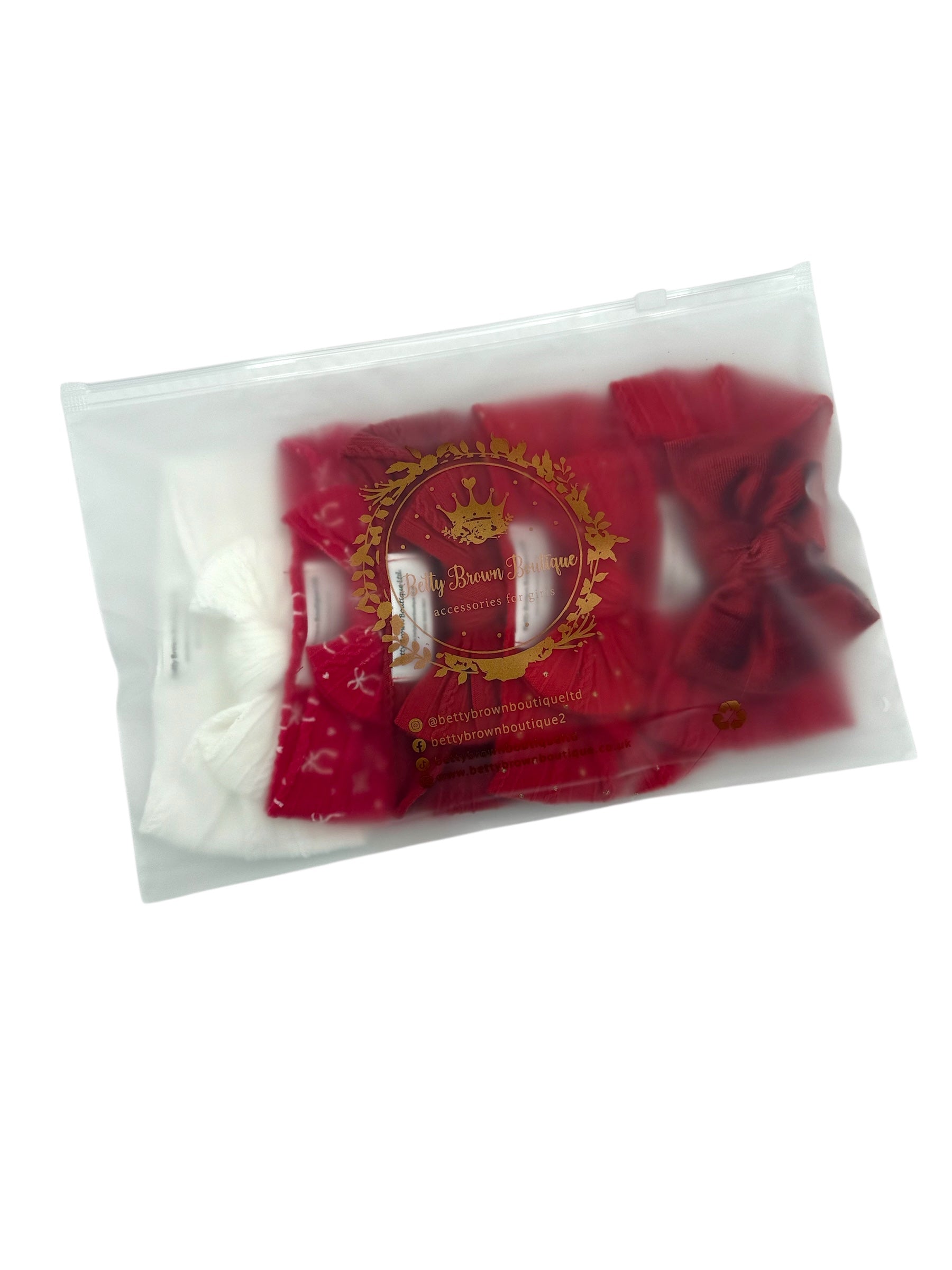 Christmas Simplicity Bundle of 5 Smaller Bow Cable Knit Headbands - Suitable From Newborn