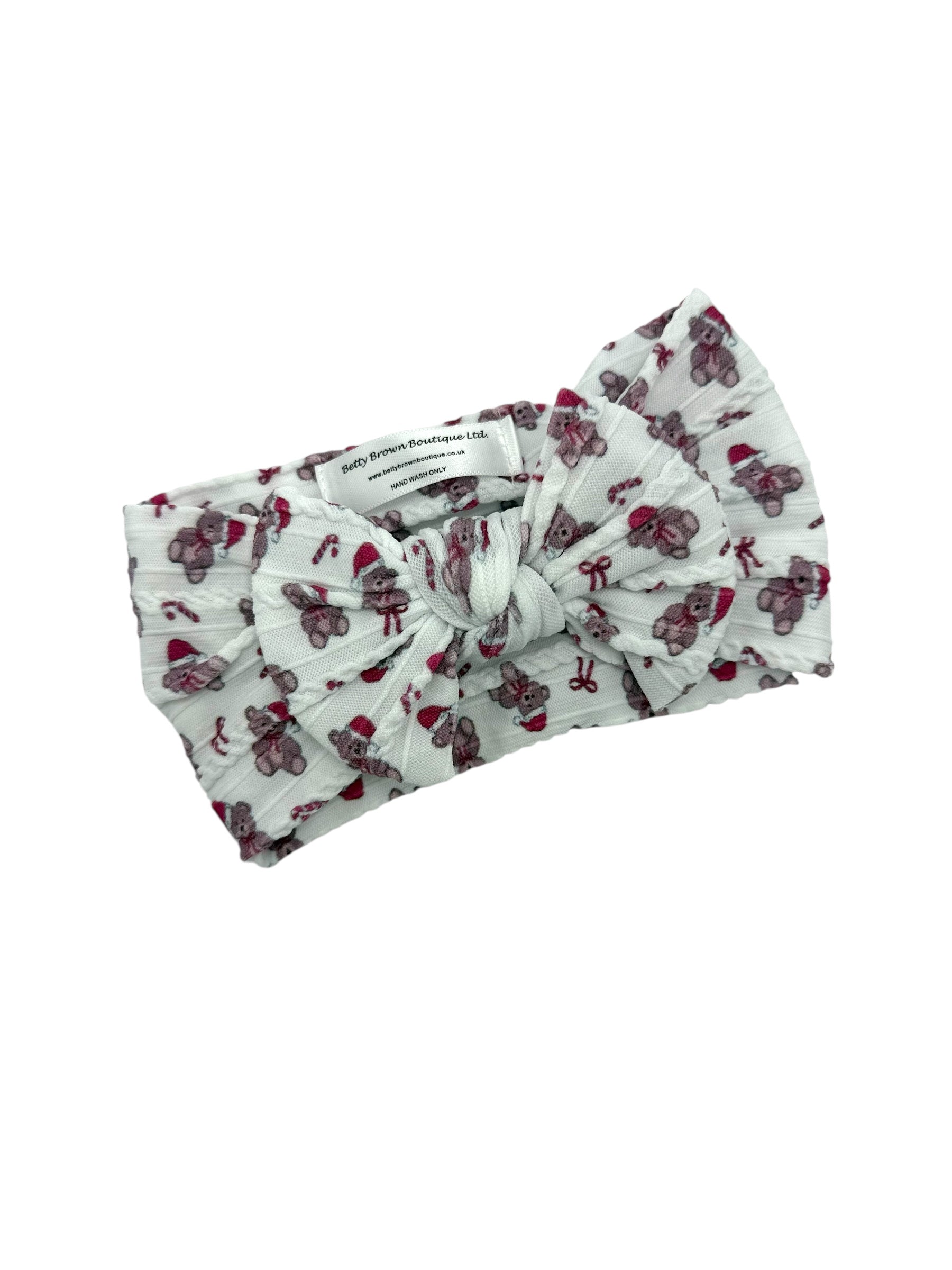 Christmas Teddy Bear Smaller Bow Cable Knit Headband - 2025