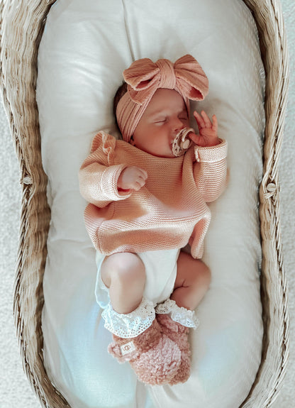 Lighter Dusty Pink Larger Bow Cable Knit Headband